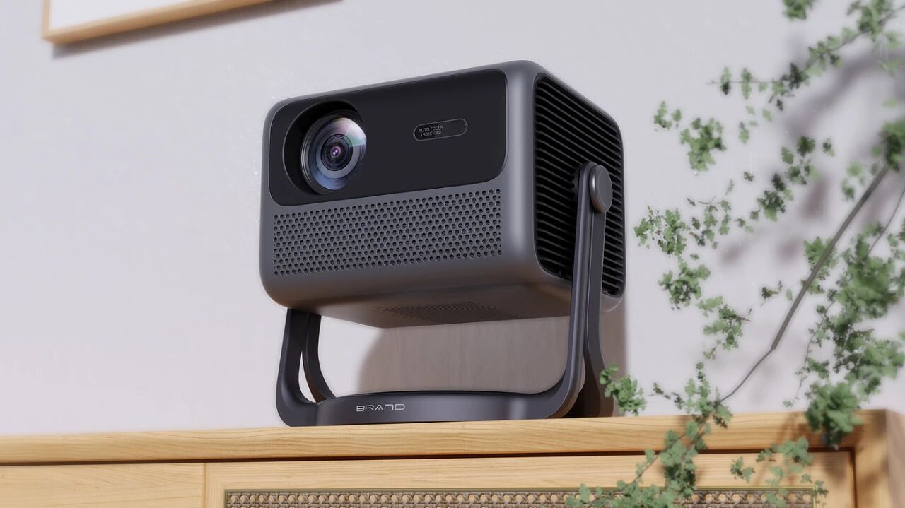 本纯设计携手瑞格尔开发设计投影仪,设计特点:这款居家投影仪设计独特,配备可360度旋转的支架,提供灵活的投影角度调整。