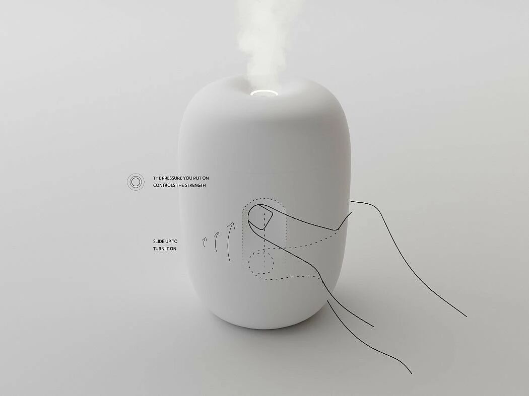 Pillowy是用压力来控制加湿程度大小的加湿器,犹如捏挤牙膏一样,当你施加压力越大,机器释放的湿度越大。